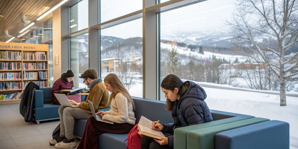 While tuition is free, students pay a nominal semester fee (typically 300-600 NOK) covering welfare services, student organizations, and local infrastructure.